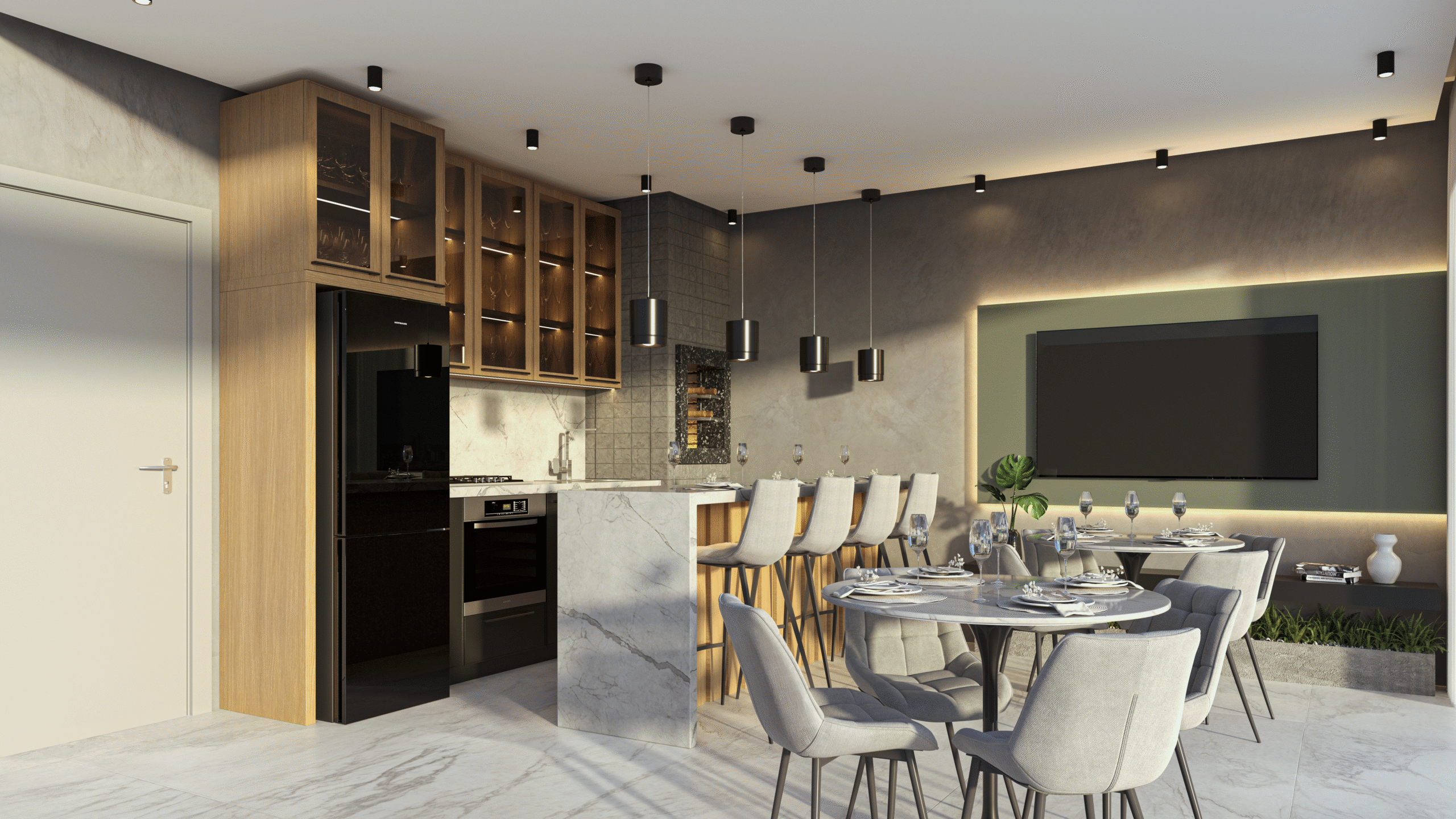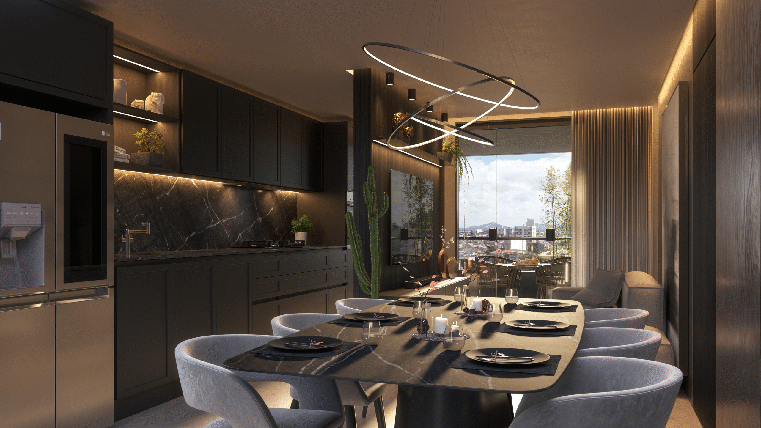 A sacada gourmet amplia a experiência de convivência, enquanto os acabamentos de alto padrão garantem sofisticação em cada ambiente.