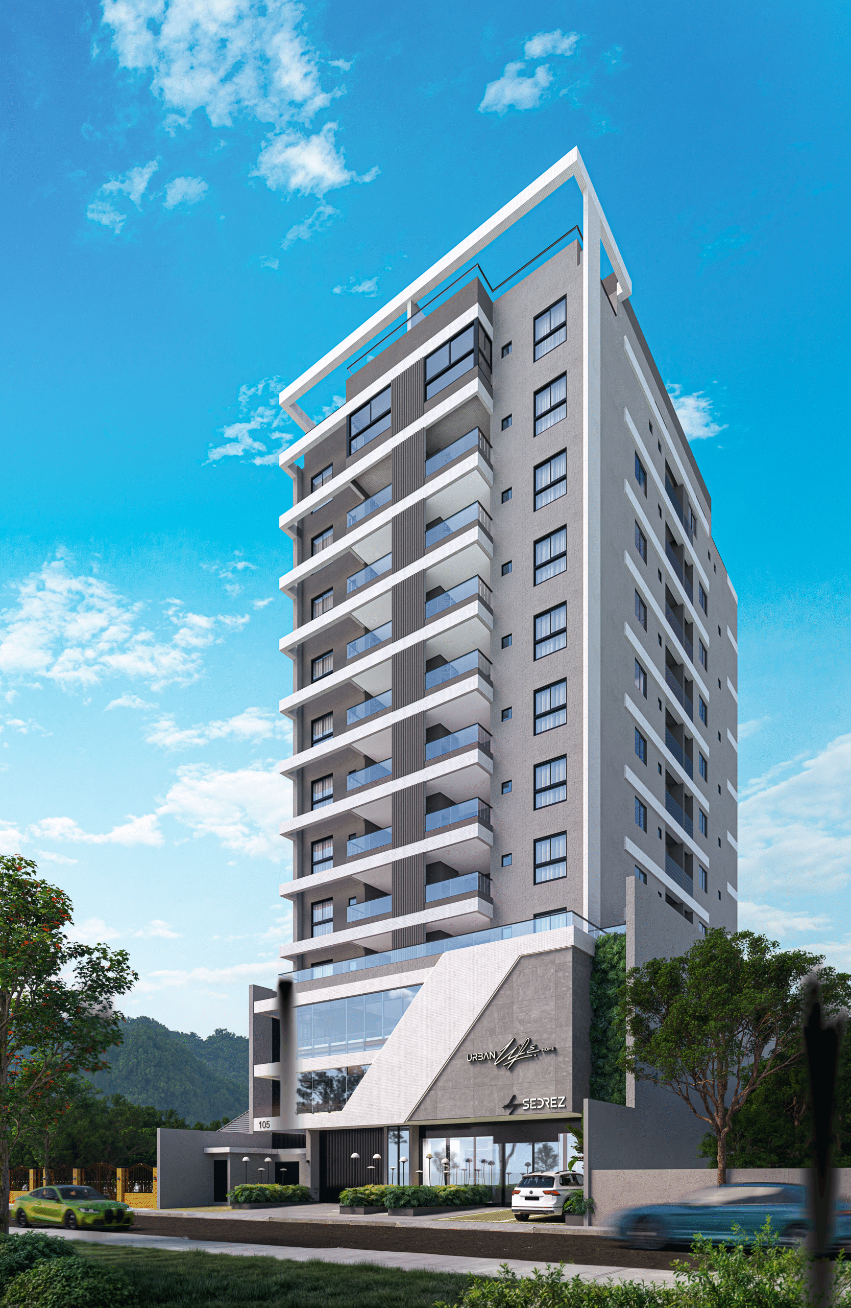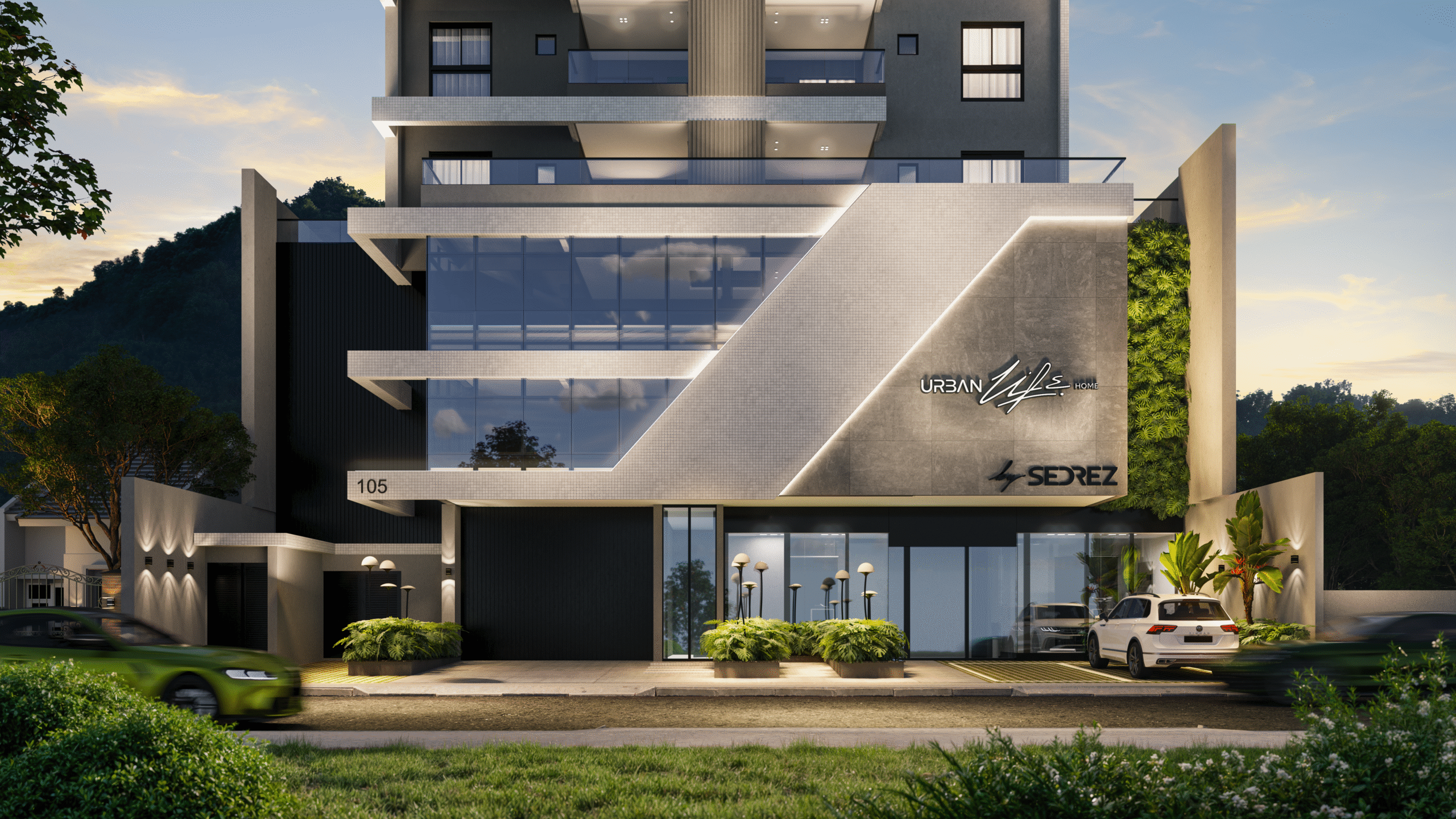 O Urban Life Home apresenta uma arquitetura contemporânea marcada por linhas retas e imponentes, que traduzem sofisticação e modernidade.